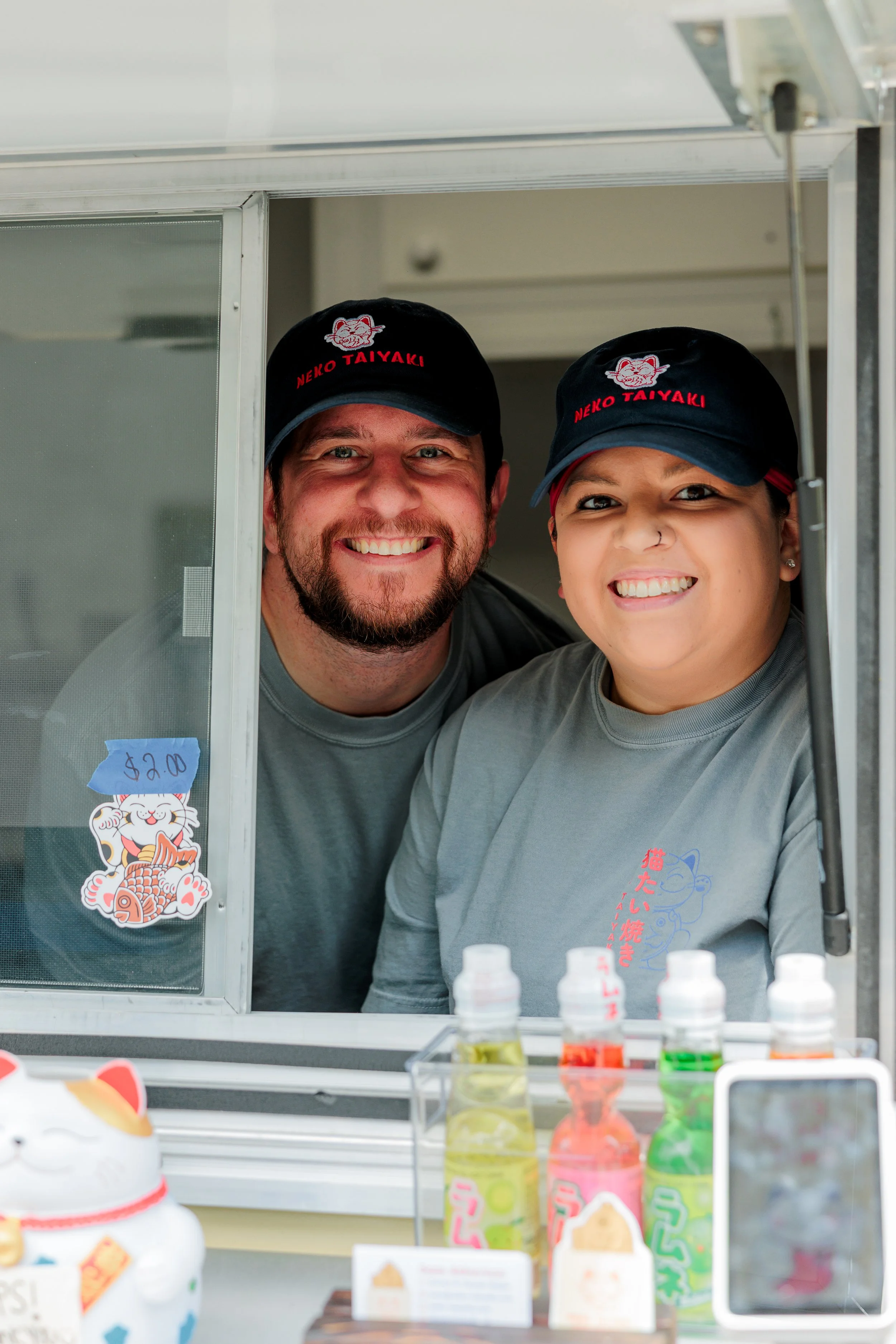 Hi, we are Sam and Maggie, the owners of Neko Taiyaki! We met in July 2022 and fell in love over our mutual dislike of pickles. I shared my dream to start a food truck shortly after we started dating. Maggie encouraged me to follow my dream… and now here we are!