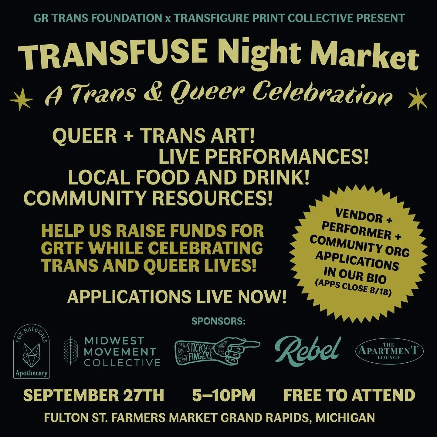 Sep 27 Transfuse Night Market Saturday, September 27, 2025 5:00 PM 10:00 PM Fulton Street Market (map) Google Calendar ICS View Event →